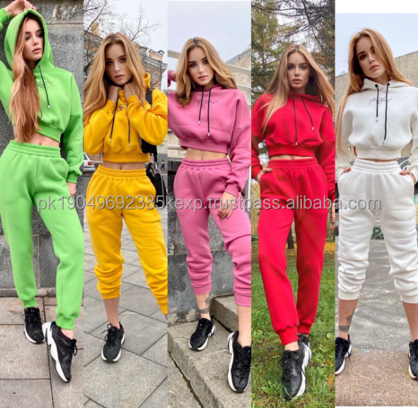 New Fashion Women Slouchy Training Drawstring Outfit French Terry Hoodies Sweat Shirt Pants Jogger Set