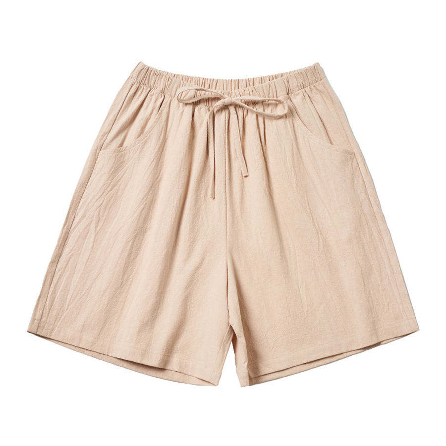 New Fashion Women Vintage Bermuda Summer Shorts Drawstring Elastic Waist 100% Cotton Pockets Casual