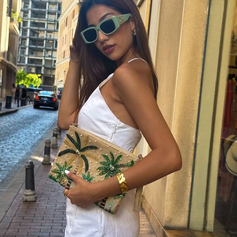 New Fashion Women's Bag Single Shoulder Hand Print Set Bag Wholesale Wood Bead Fringe