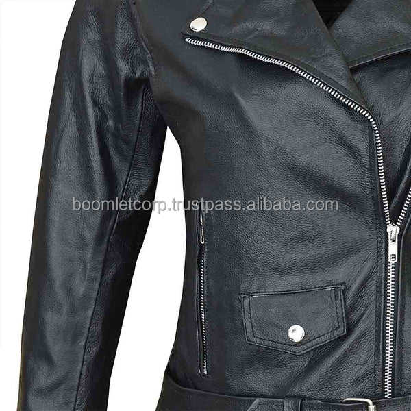 New Fashion Women's Geuniune Leather Biker Jacket Long Sleeve Casual Slim Racing Jacket Solid Color Zipper Plus Size Sportswear