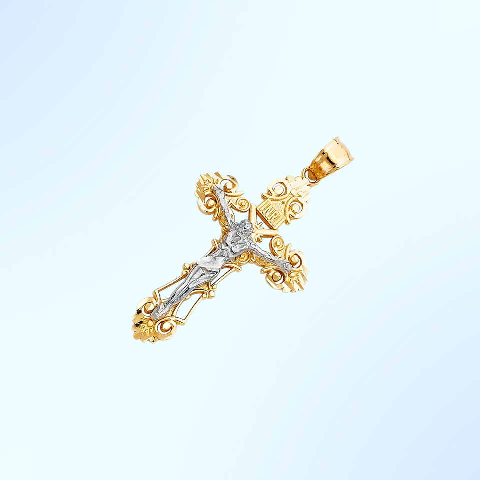 New Fashionable 14k Two Tone Gold and Silver Plated Christian Jesus Crucifix Cross Charm Unisex Pendant Jewelry