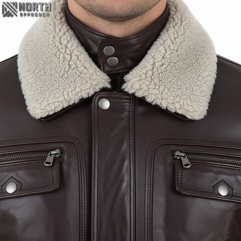 New Fashionable Black Genuine Leather Jacket Slim Fit With Wool Collar Four Pockets Thin High Street Style Factory Prices Bomber