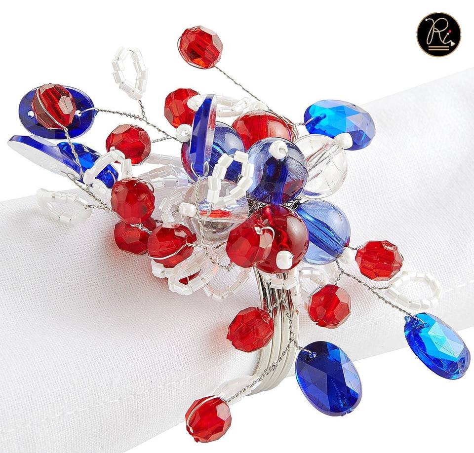 New Fashionable Blue Beaded Rounded Shape Napkin Rings Holder for Restaurant Wedding Table Decoration Accessories Usage