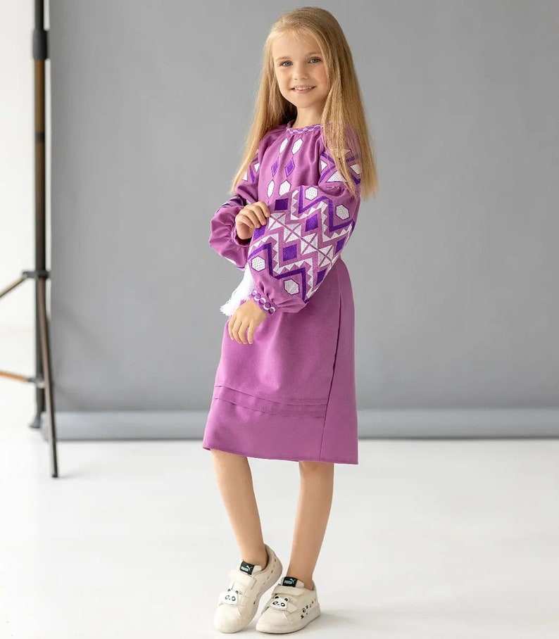 New Fashionable Embroidered Long Balloon Sleeves Midi Length Child Dress With Pocket