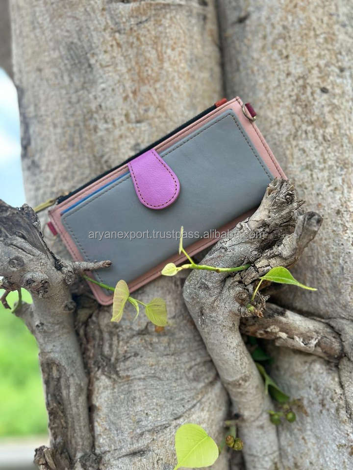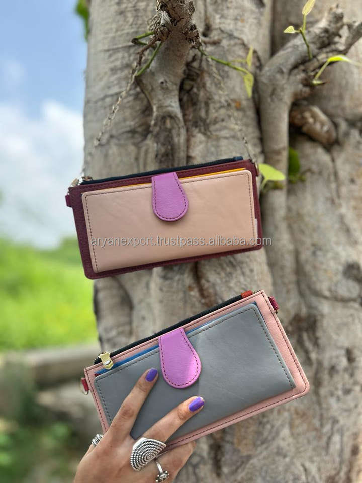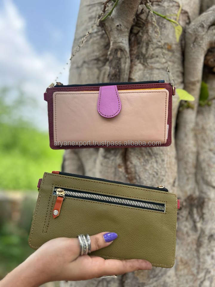 New Fashionable Recycled Genuine Leather Rainbow Color Women's Clutch Stylish Multiuse ATM Holder Trendy Purse With Metal Chains