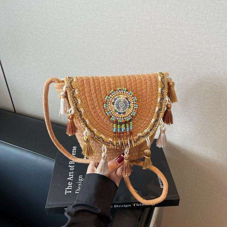 New Fashionable Retro Woven Winter Women's Crossbody Bag with Tassel Design ZIP Closure for Travel Shopping Outdoor Use