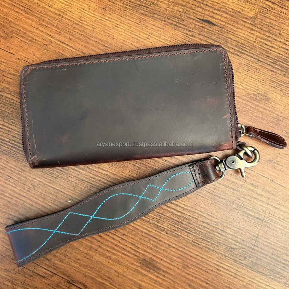 Product Name:Boot Stitch Full Grain Genuine Leather Zipper Wallet