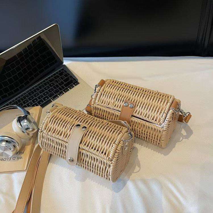 New Fashionable Vintage Lady Straw Woven Women's ZIP Closure Single Strap Daily Life Use Shoulder & Crossbody Bag