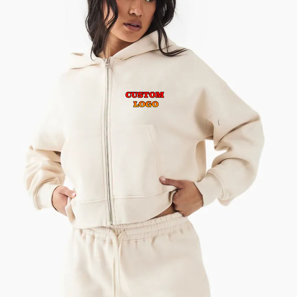 New Fashionable Winter 3D Embroidery 500 Gsm Zip Cropped Women's Heavyweight Hoodies Loose Fit Comfortable Sweatshirt Wholesale