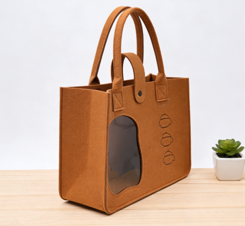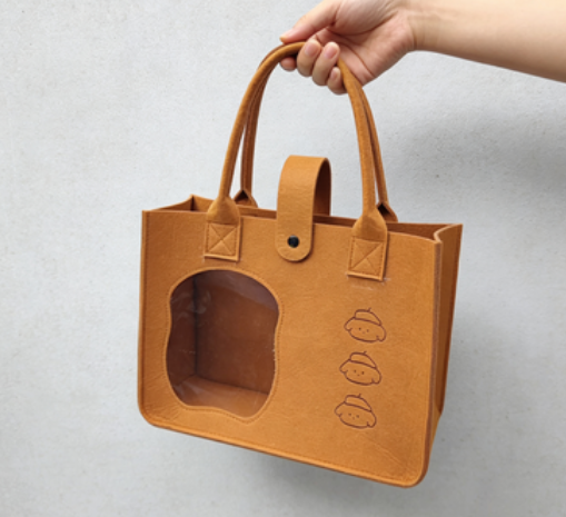 New Felt Bag Cute Cartoon Felt Handbag Shopping Printed Transparent PVC Felt Bag Gift Bag
