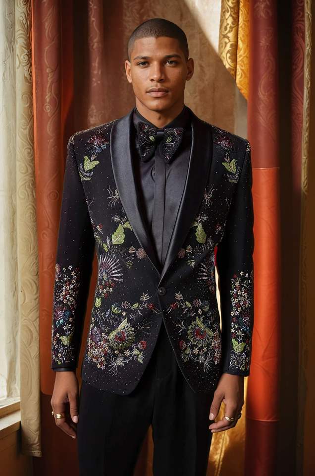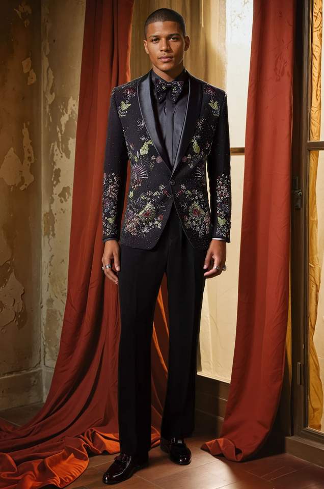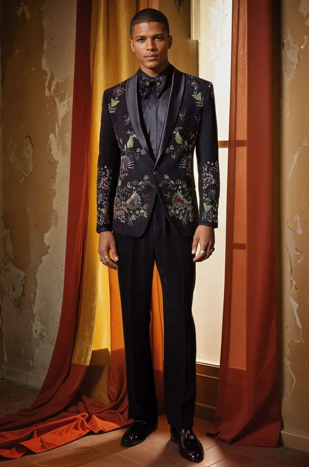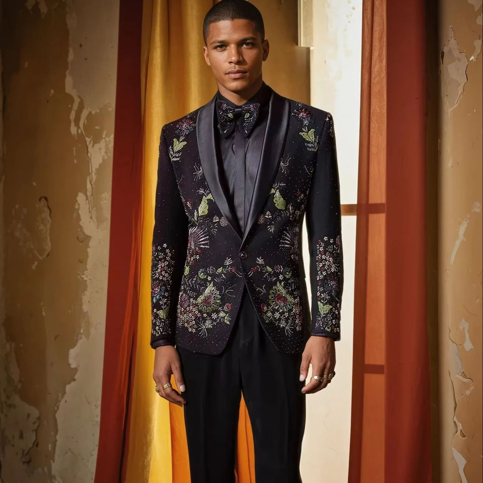 New Floral Embroidery Wedding Suits for Men Formal Slim Fit Single Button Men's Party Wear Business Suit Jacket