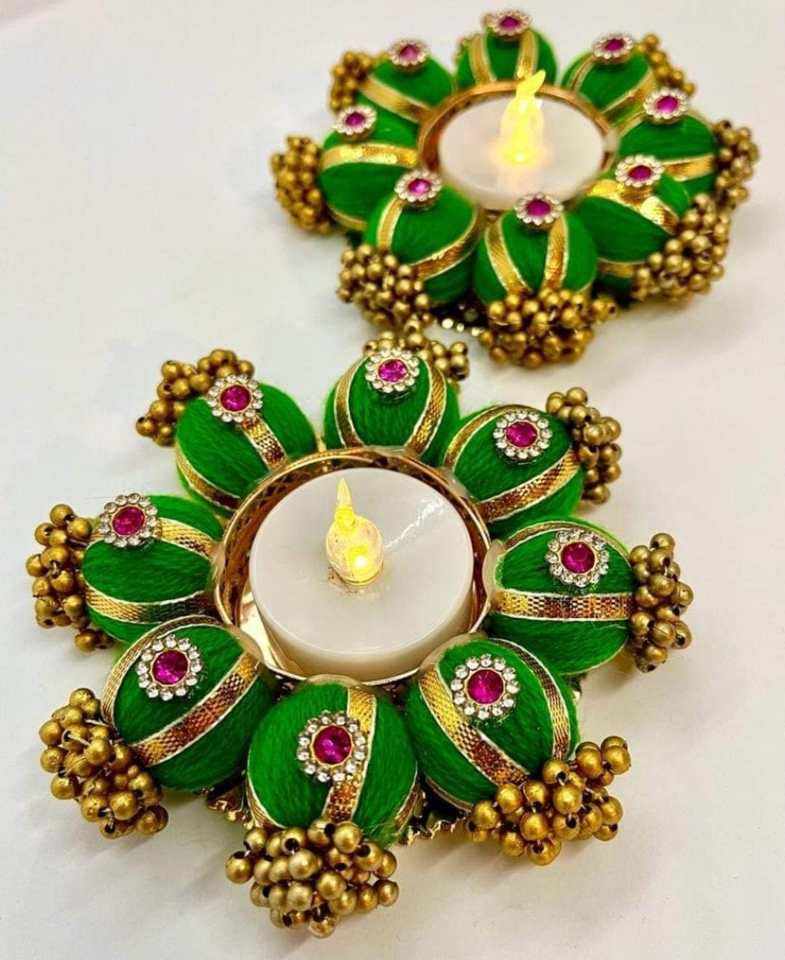 New Flower Pom Pom Metal Gota Patti Tea Light Diya Floral Design Set for Wedding Decor Items Tea Party Decor Festival Decor