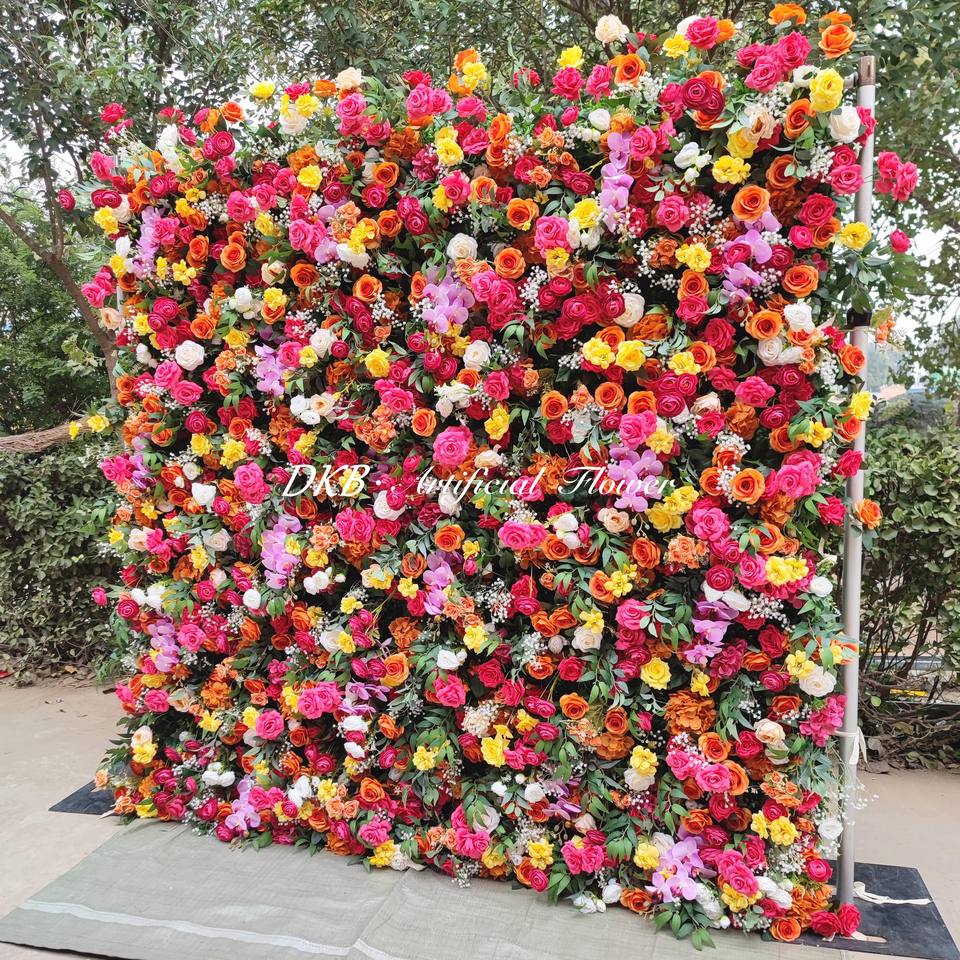 New Flower Wall 8ft X 8ft Artificial Colorful Flower Wall for Wedding Decoration High Quality Silk Material Real Touch