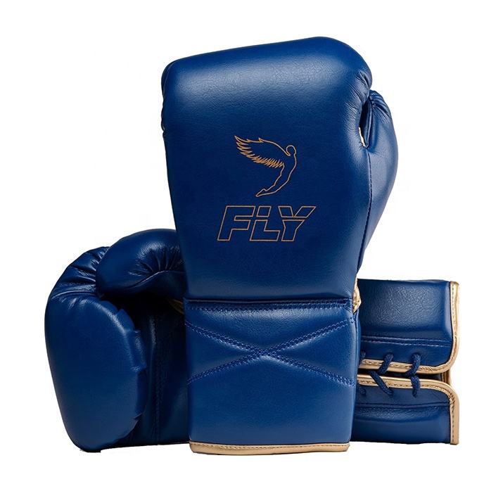 New Fly Model Kickboxing Competition Lace Up Dark Blue Boxing Gloves Cheap Price Genuine Cowhide Leather Sparring Muay Thai