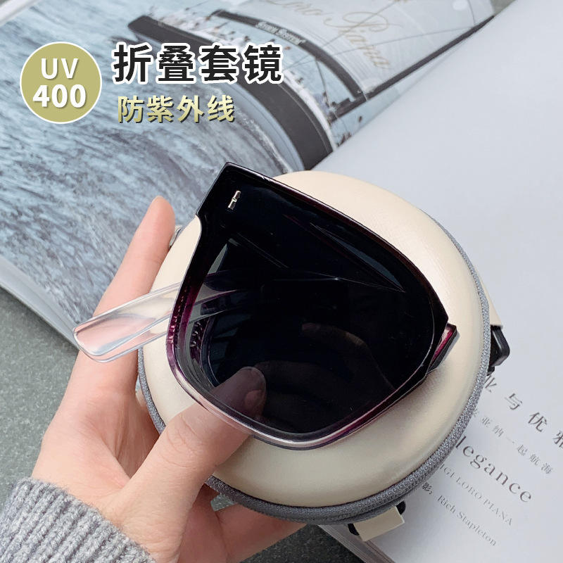 New Folding Over Ear Sunglasses For Women Black Pc Frame Uv400 Polarized Lens Driving With Prescriptions Box Packaging