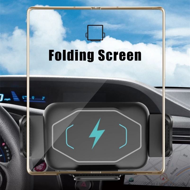 New Folding Screen Mobile Phone FCC 15w Car Wireless Chargercar Phone Holder Mounts With Charger