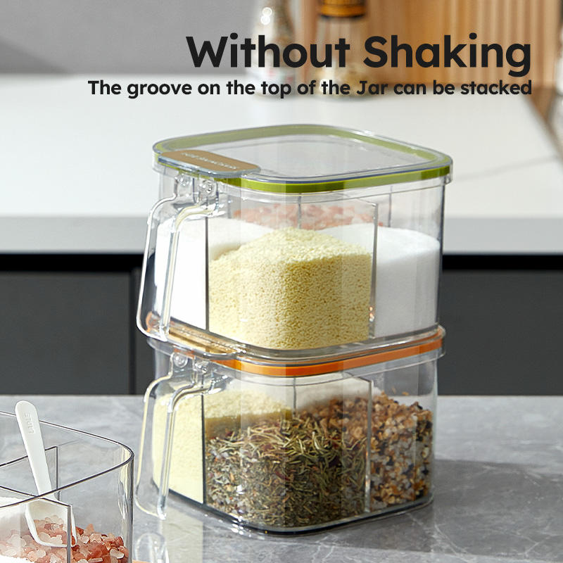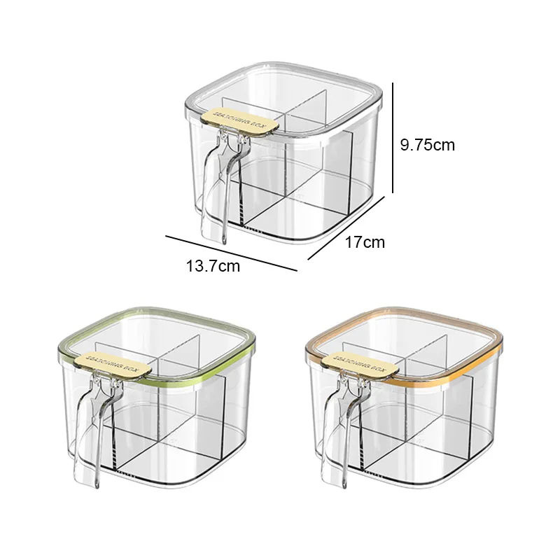 New Food Grade PET sealed Seasoning Box 4 Compartments Spice Organizer Box Set with Spoon