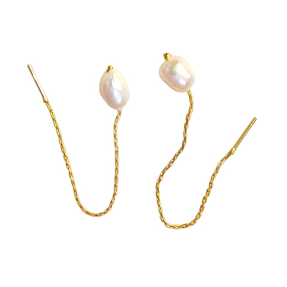 New Freshwater Pearl Long Chain Dangle Earrings Brass Gold Drop Bridal Jewelry From Indian Supplier Fashion Cut Studs