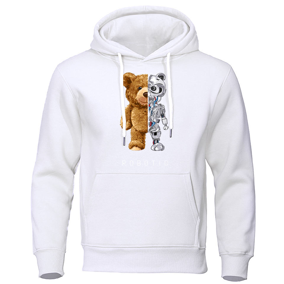 New Funny Teddy Bear Robot Hoodie Robotic Bear Clothing Casual Hooded Men Fashion Sweatshirts Fleece Oversized Loose Streetwear