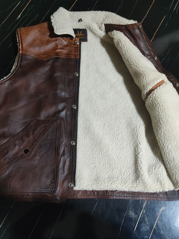 New Fur Collar Genuine Leather Vest Customize Hip Hop Cut For Men Trending Wholesale Design Cowhide Waistcoat