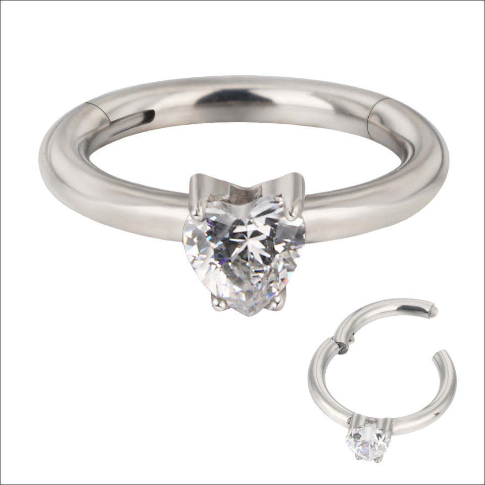 New G23 Titanium Prong Set Heart CZ Clickers Hinged Segment Ring Nose Earrings Piercing Body Jewelry Wedding Engagement Zircon