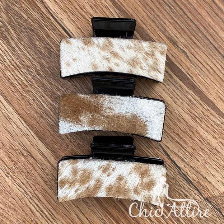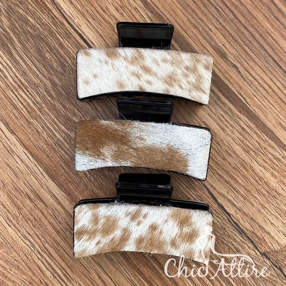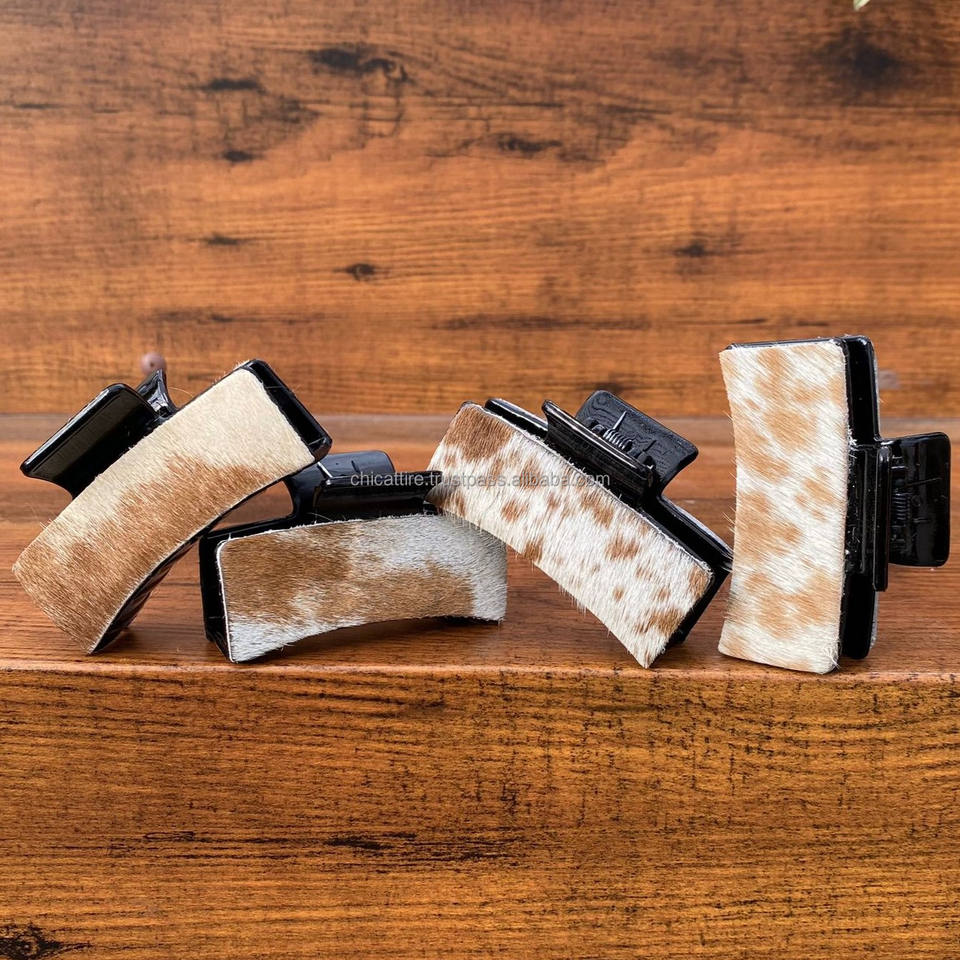 New Genuine Leather Hair Claw Western Cowhide Leather Hair Clips Custom Leather Hair Barrette Women's Gifts Cowgirl Claw Clips