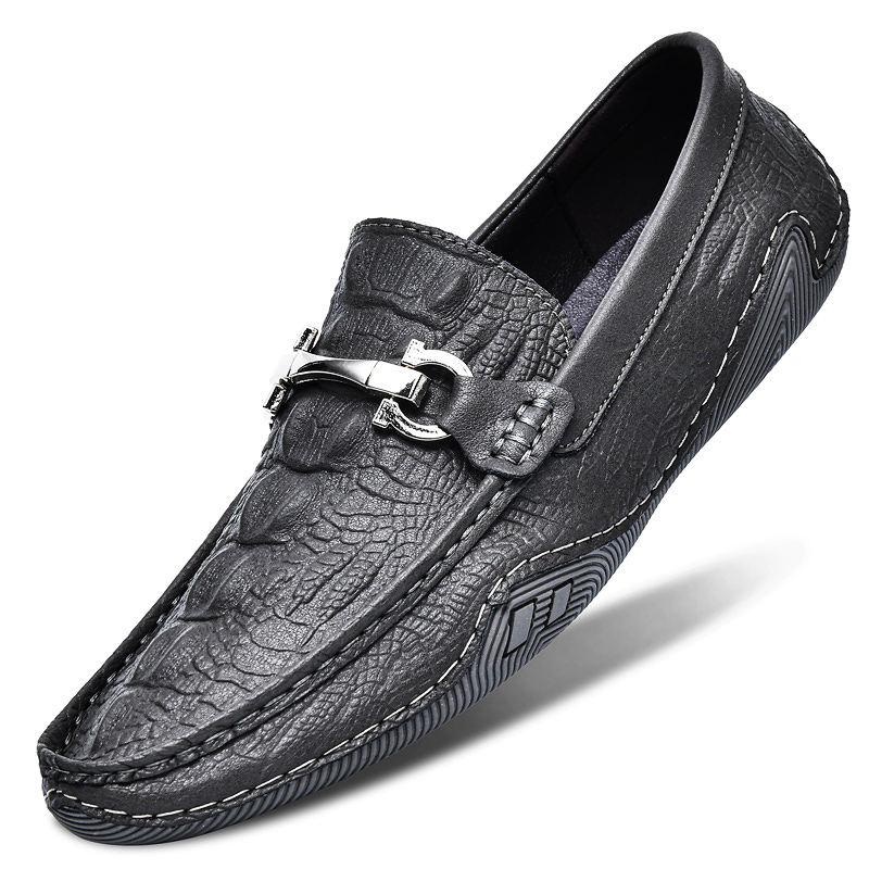 New Min Ke Genuine Leather Men's Casual Shoes Luxury Brand Loafers Moccasins Breathable Anti-Slip Light Weight Slip Black