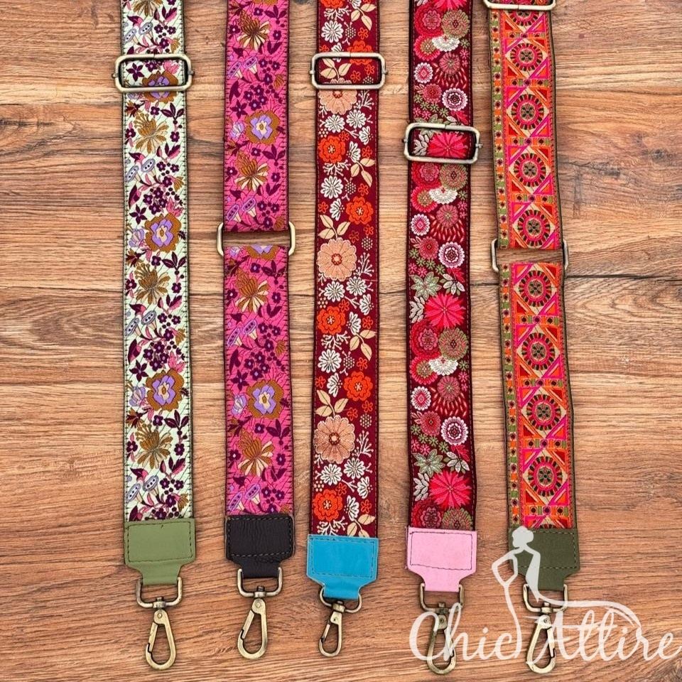 New Genuine Suede Leather Banjara Bag Strap Embroidered Crossbody Purse Strap Floral Boho Replacement Guitar Strap for Women's