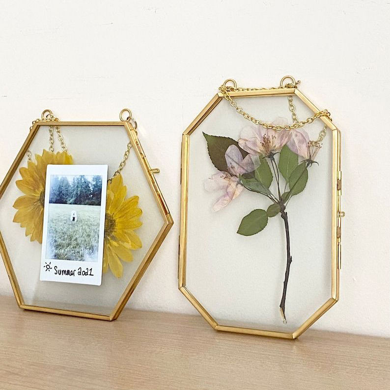 New Gold Wall Hanging Metal Glass Photo Frame Dried Flowers Pressed Flowers Poster Double Glass Frame Home Jewelry Boxes
