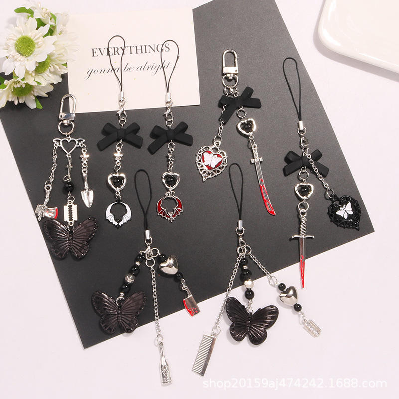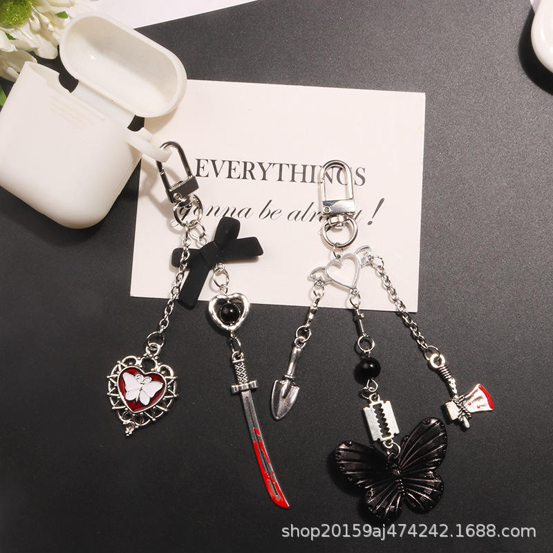 New Gothic Style Butterfly Heart Keychain Pendant Cute Sweet Cool Alloy Accessories Earphone Case Bag Decoration