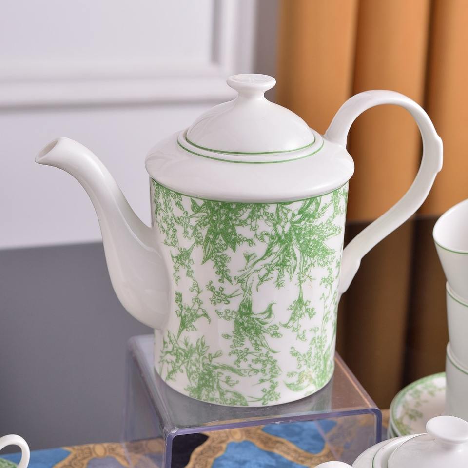 green lily of the valley pattern 15pcs coffee and bone china tea sets