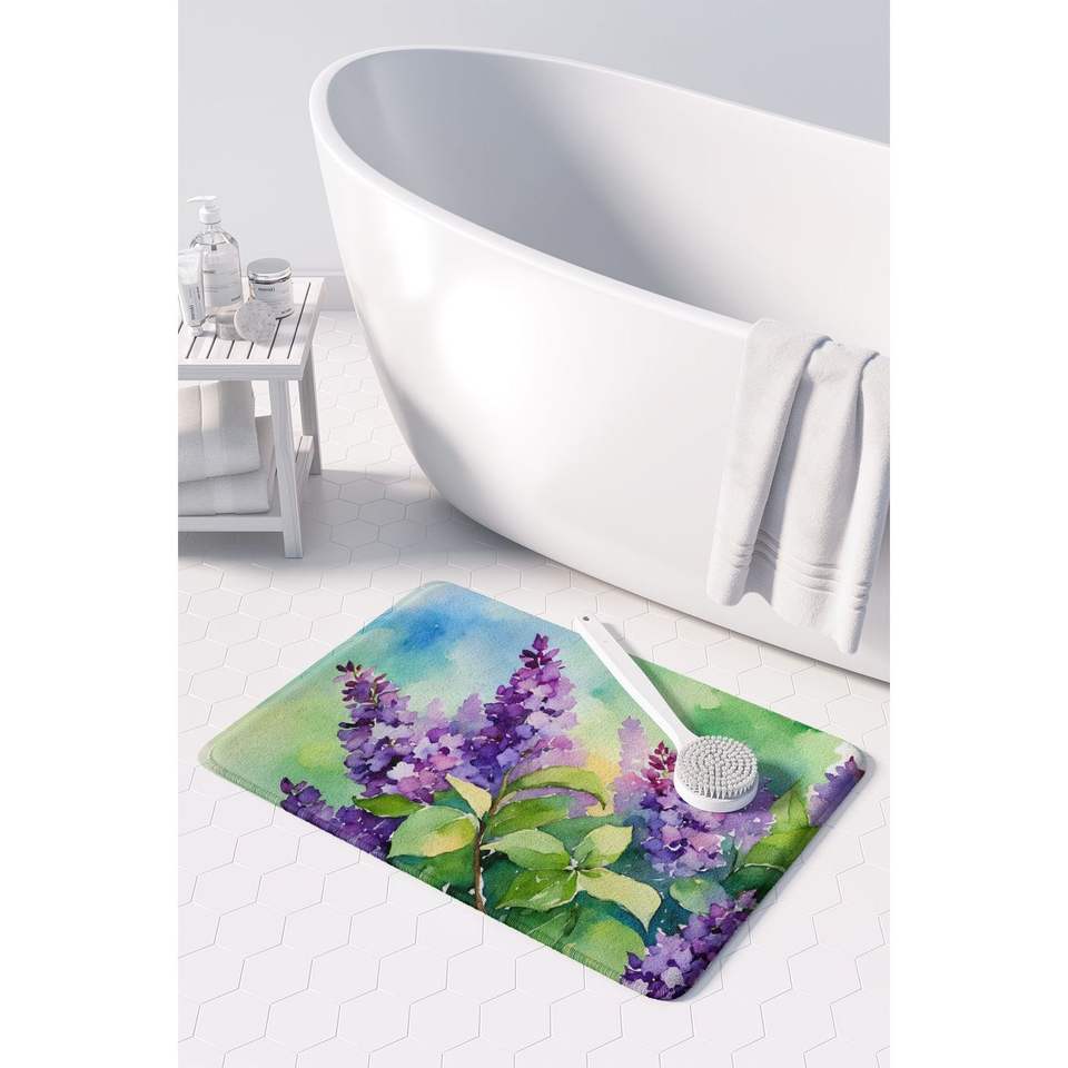 New Hampshire Purple Lilac Watercolor Memory Foam Bath Mat Machine Washable Anti-Fatigue Kitchen Rug Comfort Cushion