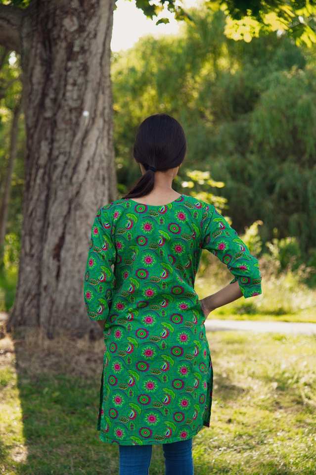 New Hanalei Tunic Top Pure Cotton Hand Block Printed Green Pink Floral Bohemian Kurti Holiday Casual Handmade Ethical Fashion