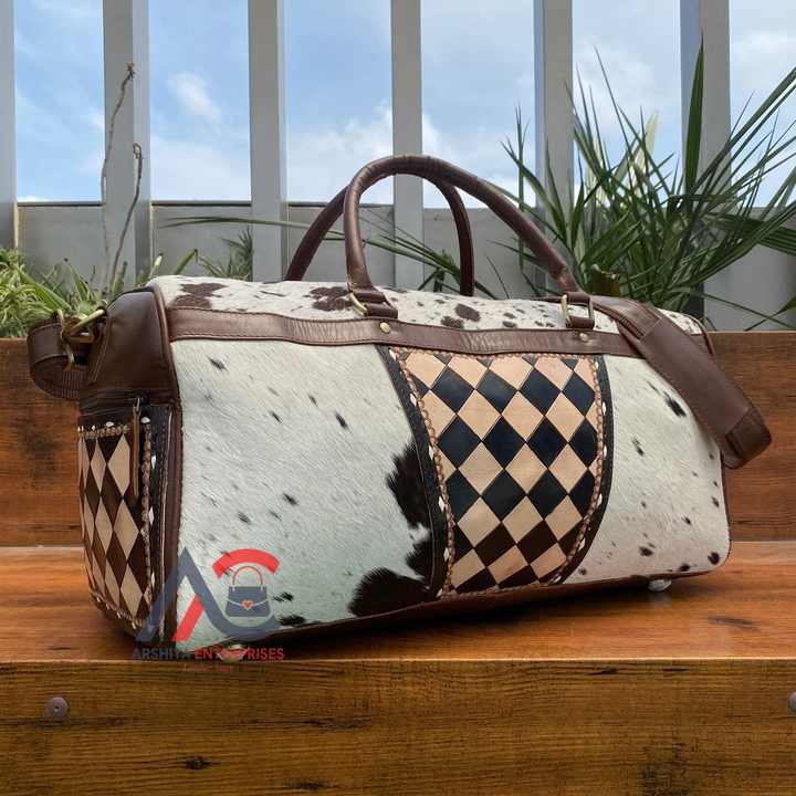 Product name:Checkered Pattern Tooled Cowhide Leather Duffel Bag