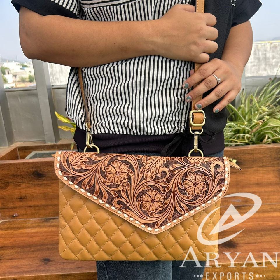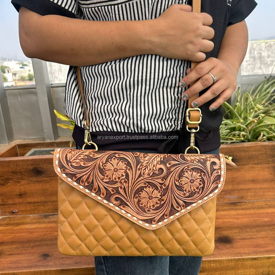 Product Name:Hand Tooled Envelope Crossbody Bag