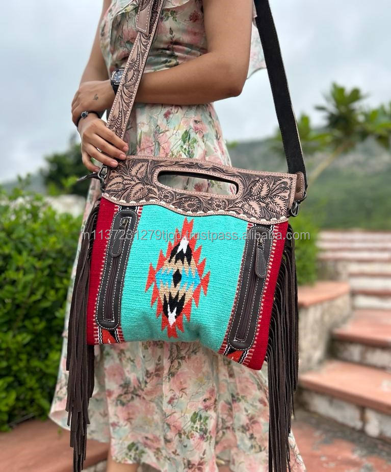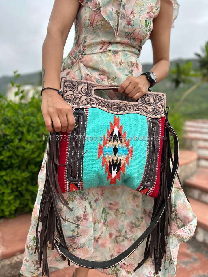 New Hand Tooled Fringe Handbag Jacquard Multi Color Sling Bohemian Aztec Fabric Designer Bag Stylish Hot Selling Bag for Women's