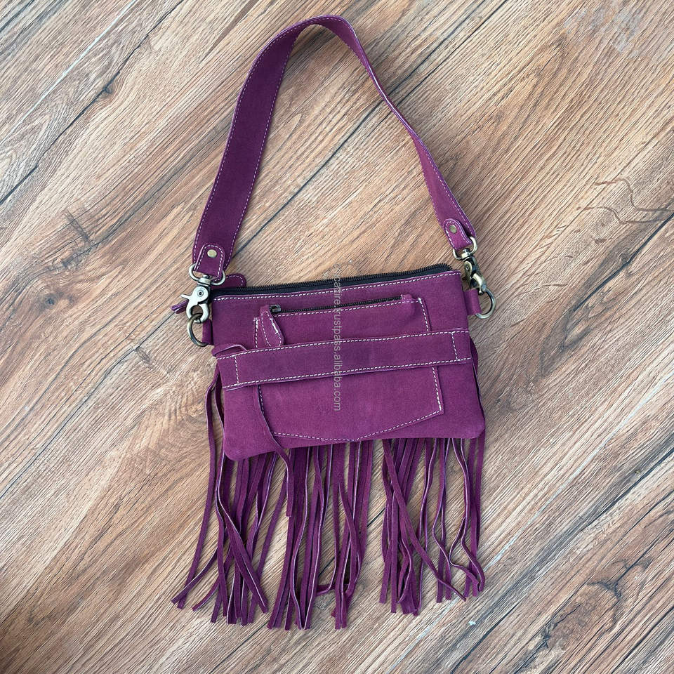 New Hand Tooled & Genuine Suede Leather Bohemian Small Fringe Crossbody Bag for Women's Western Genuine Leather Floral Handbags