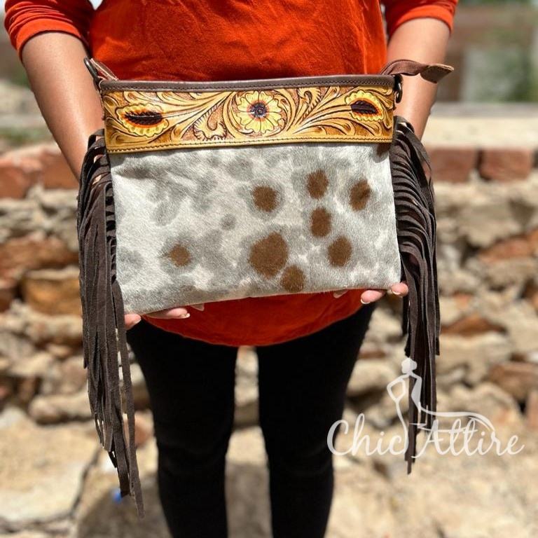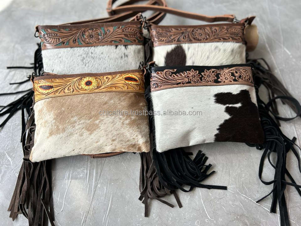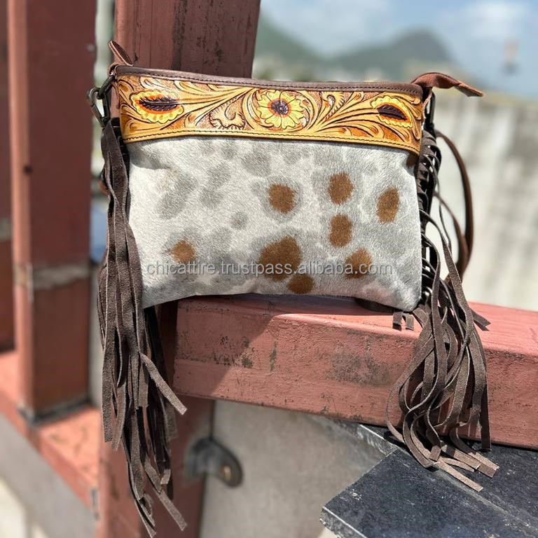 Product name:Hand Tooled Cowhide Leather Fringe Bag