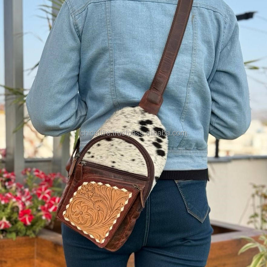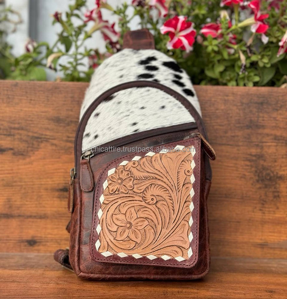 Product name:Hand Tooled Cowhide Leather Crossbody Sling Bag