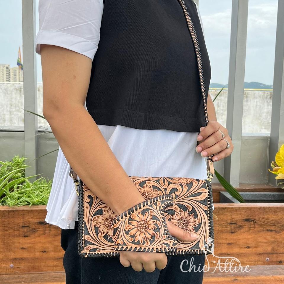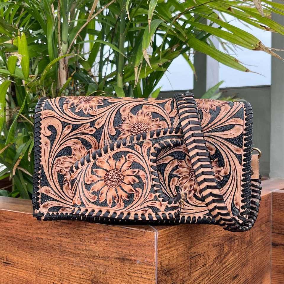Product name:Hand Tooled Leather Crossbody Clutch Bag