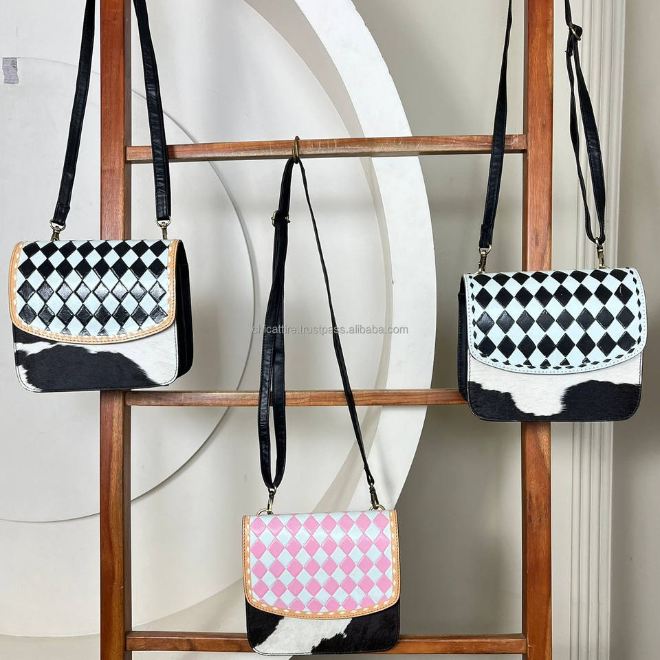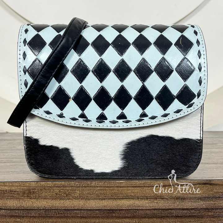 Product name:Hand Tooled Checkered Leather Crossbody Bag