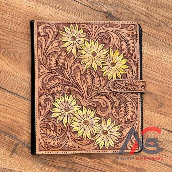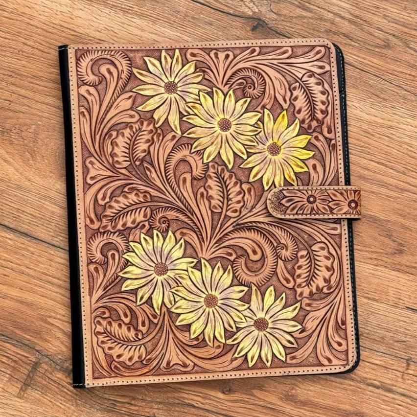 New Hand-Tooled Leather Portfolio Floral Leather Journal Covers Western Sunflower Planner Legal Pad Notebook Envelope Portfolio
