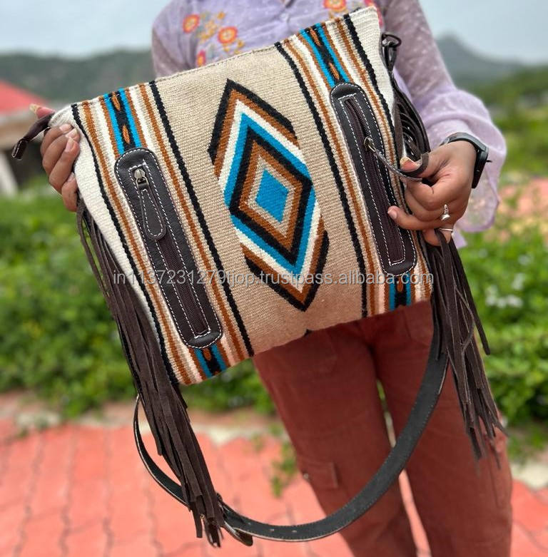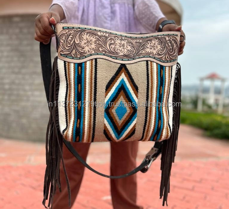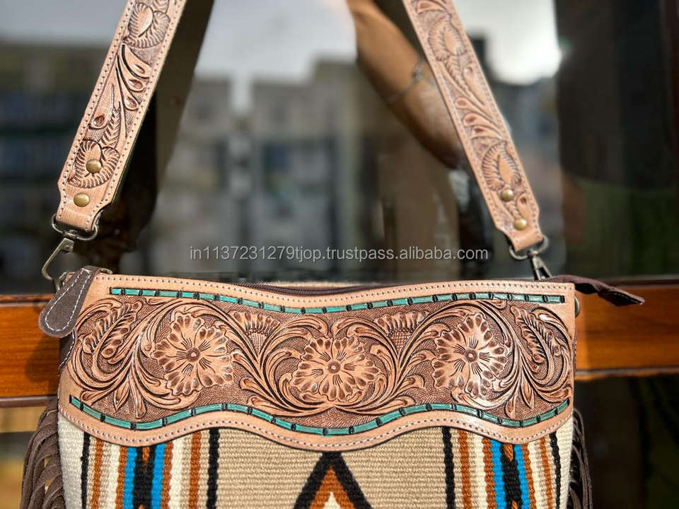 New Hand Tooled Leather Saddle Blanket Feather Purse for Women Cowgirl Western Conceal Carry Bag Large Tote With Crossbody Strap