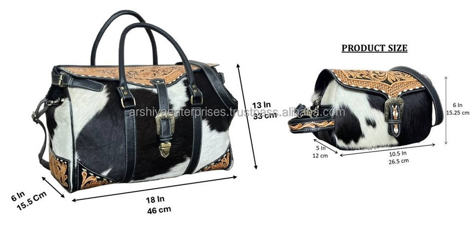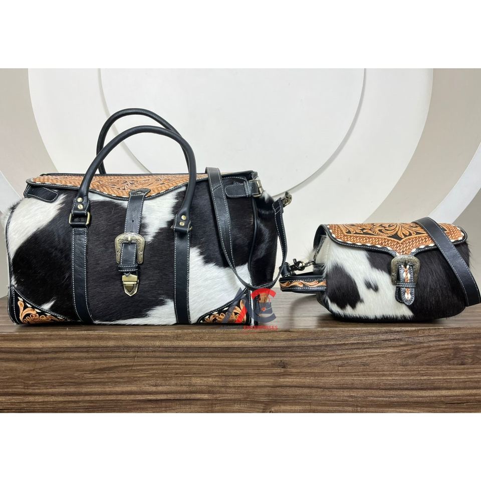 New Hand Tooled Leather Travel Duffel Bag with Matching Crossbody Cosmetic Bag Set Genuine Cowhide Western Two Piece Luggage Set