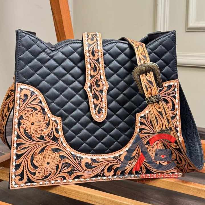 Product name:Hand Tooled Quilted Leather Women's Crossbody Messenger Bag