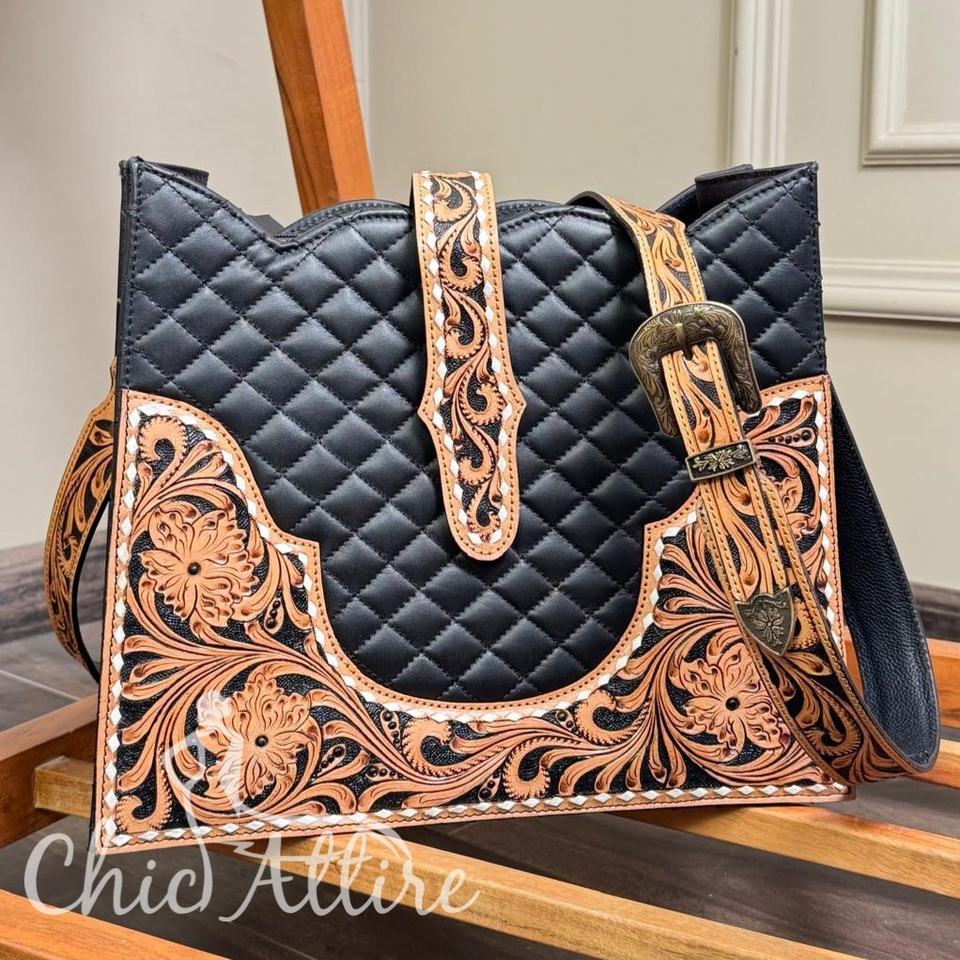 Product name:Hand Tooled Quilted Leather Women's Crossbody Messenger Bag