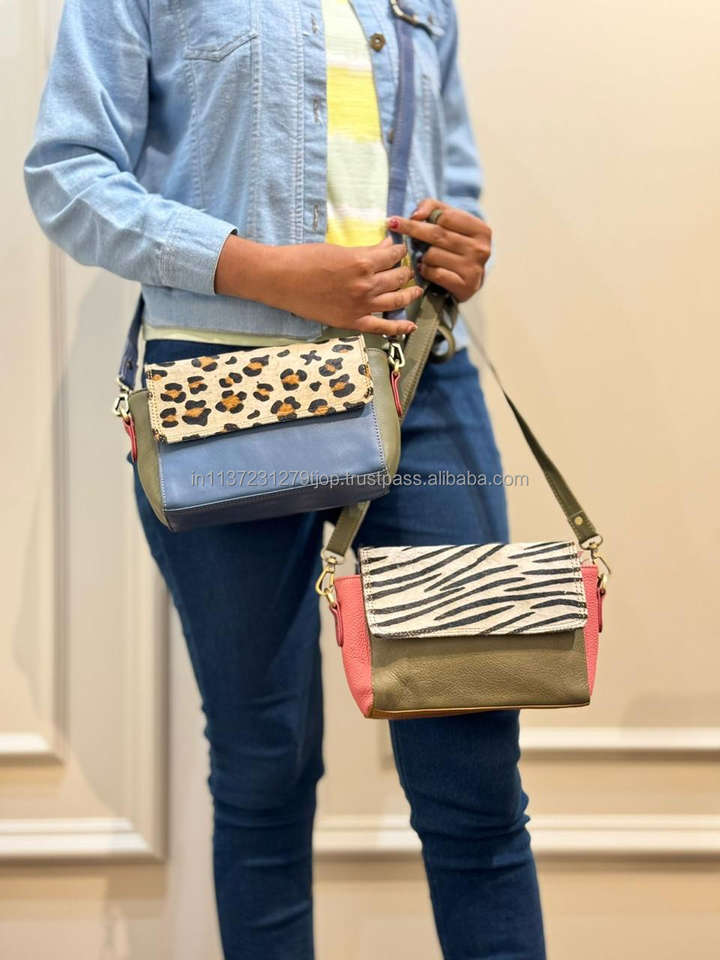 New Handcrafted Genuine Recycled Leather Sling Bags Stylish Women Animal Print Fur Leather Crossbody Bag Casual Multicolor Bags