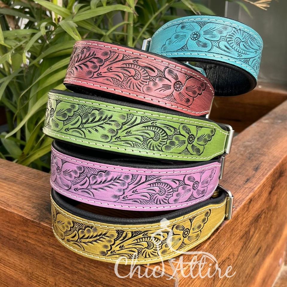 Hand Tooled Leather Padded Dog Collar