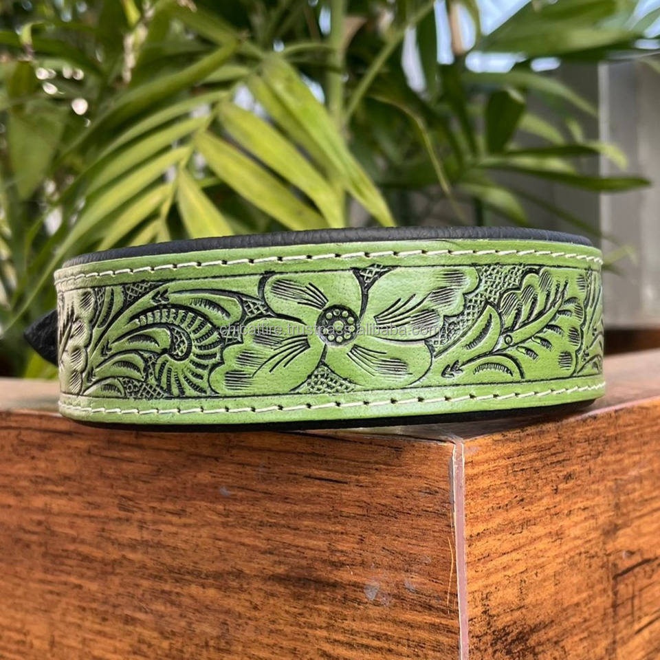 New Handcrafted Leather Dog Collar Personalized Custom Designer Luxury Hand Tooled Genuine Cowhide Leather Pet Collars