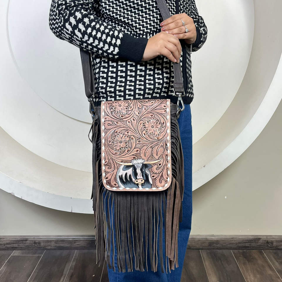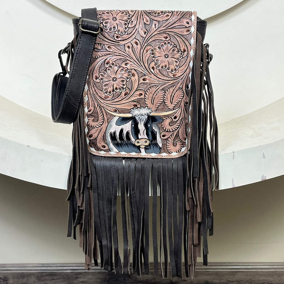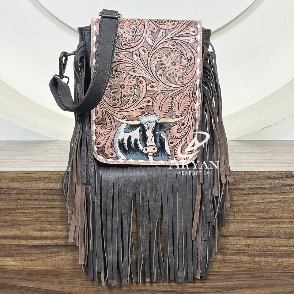 Product name:Hand Tooled Cow Leather Fringe Shoulder Bag